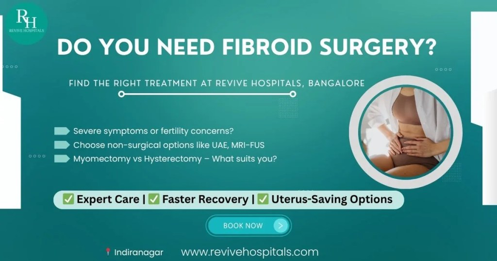 Revive Hospitals in Bangalore, especially Indiranagar, provides clients with highly qualified gynaecologists and the best surgeons that also do fibroid surgery with multiple surgical options, always endear patient comfort, and safety. Revive youngsters have strong communications skills and high ethical guidelines, making them a great option for fibroid treatment.